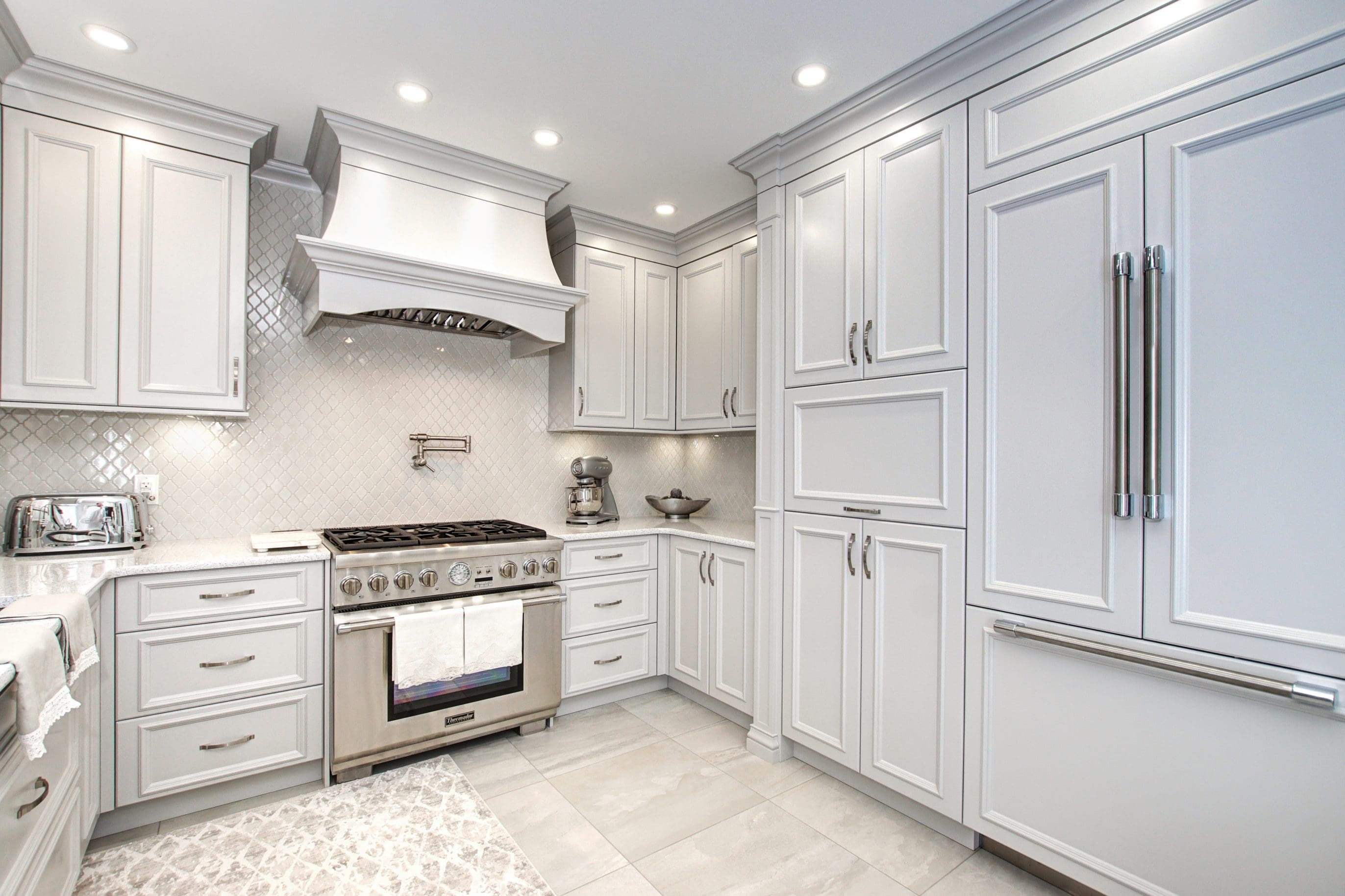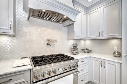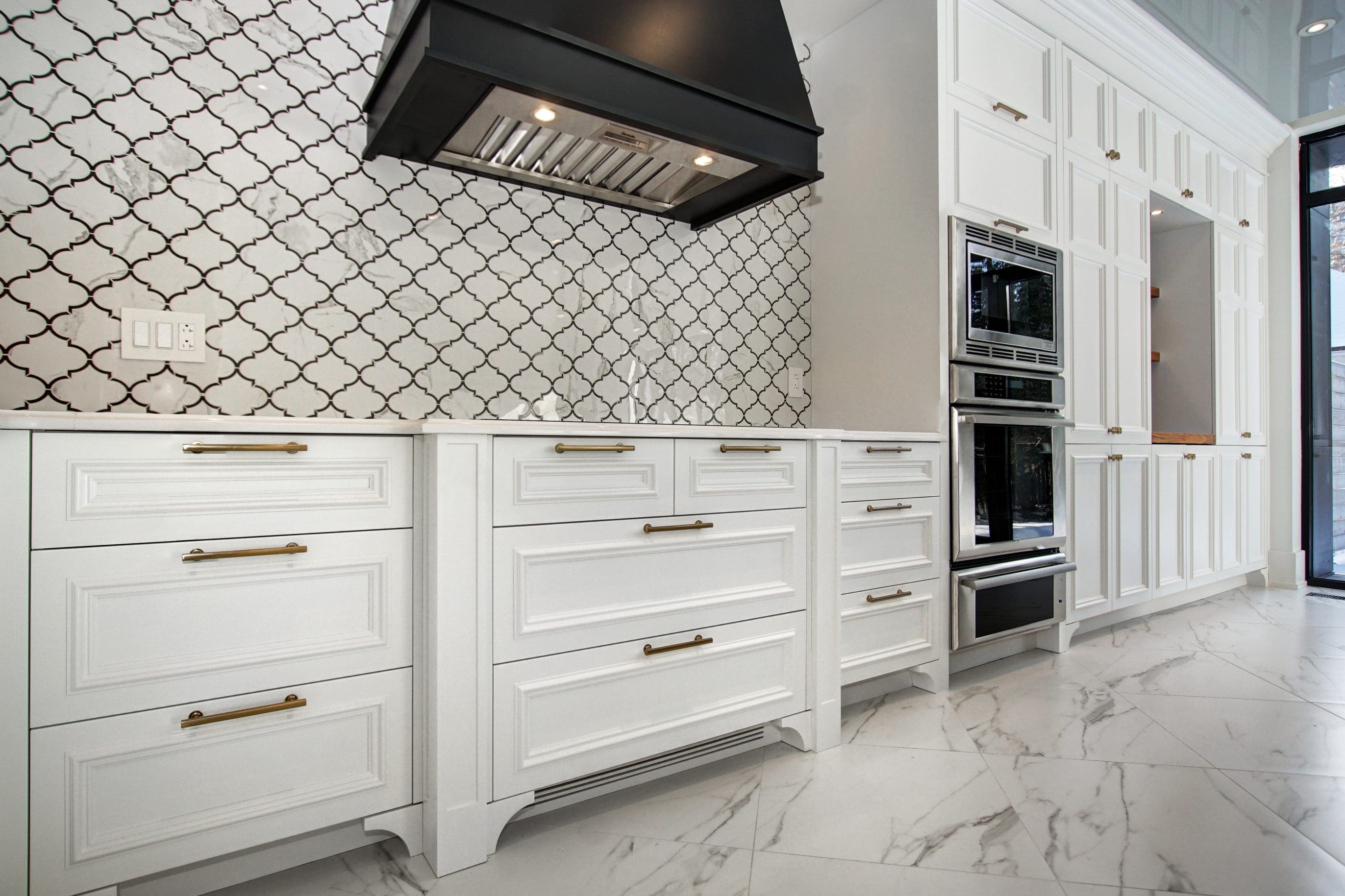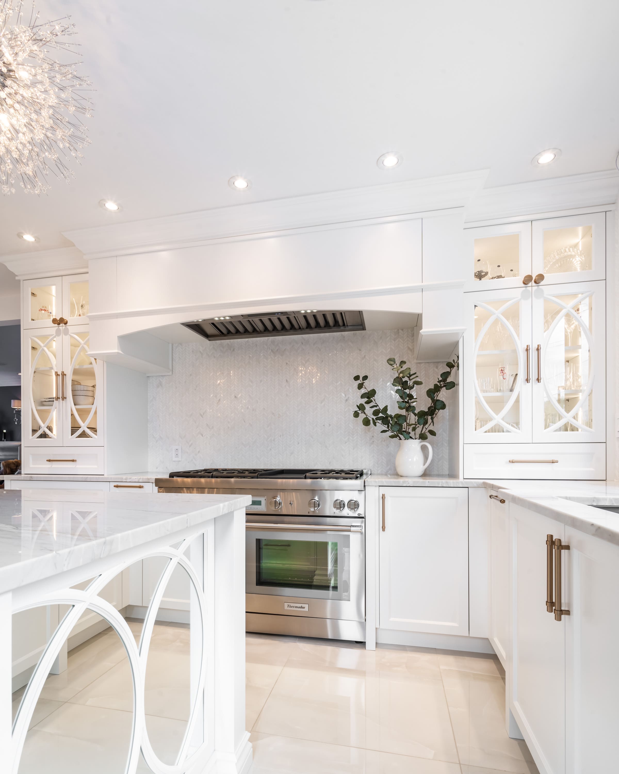 Stove hoods, both decorative and integrated into the décor, often require the expertise of a cabinetmaker. The choice of backsplash varies, but the “subway tiles” style with brick-layered ceramics is particularly popular. Finally, the classic kitchen often uses O’Gee-style ornamental moldings to add cachet.