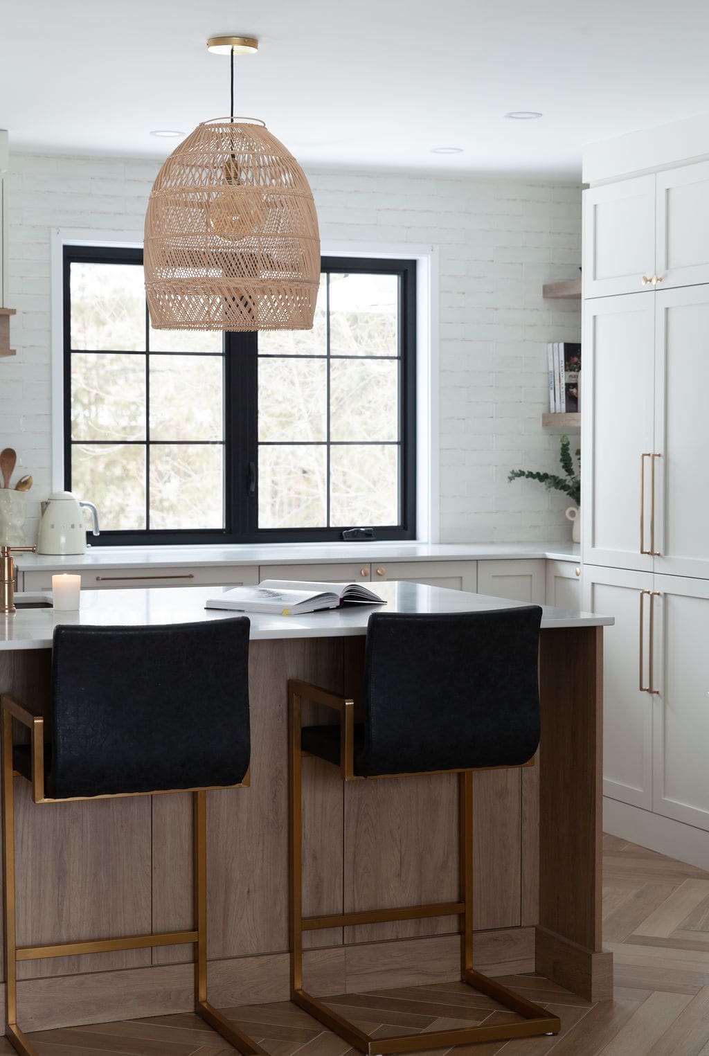 We create a warm ambience with a clever blend of natural and artificial lighting. Pendant lights are integrated above islands and worktops, adding an aesthetic dimension while providing functional lighting.