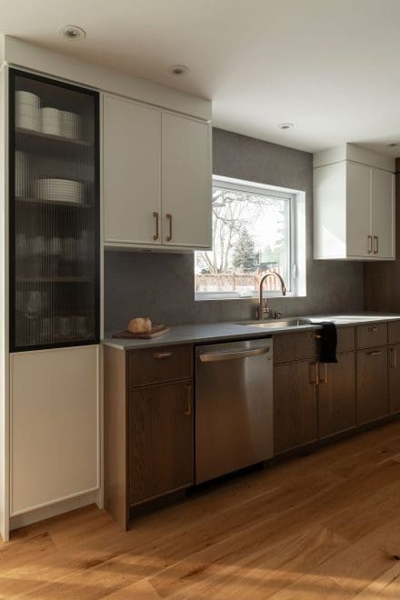 L’optimisation de l’espace est également un point clé. Les étagères réglables ou les supports intégrés permettent d’adapter les armoires en fonction des dimensions variées de la vaisselle, qu’il s’agisse de grands plats, de verres fragiles ou de petites assiettes empilées. Grâce à une organisation pensée dans les moindres détails, la zone de rangement de la vaisselle devient ainsi un espace à la fois fonctionnel, accessible et fluide contribuant à rendre chaque tâche en cuisine plus simple et plus agréable.