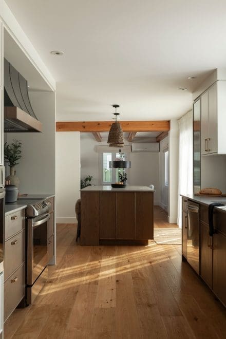 L’installation d’un îlot central dans cette zone apporte une valeur ajoutée en créant un espace supplémentaire, à la fois fonctionnel pour la cuisine et convivial pour les rassemblements.