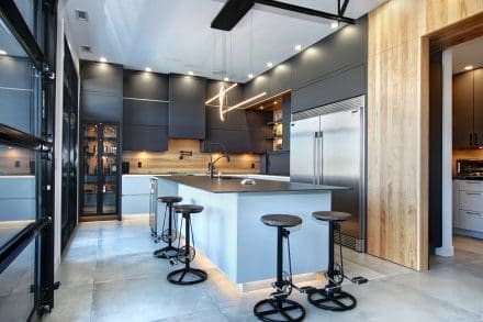 Lorsqu’on parle d’éclairage dans une cuisine contemporaine, on ne se complique pas la vie, on en met pratiquement partout. Une série de lumières sous les armoires, au-dessus des comptoirs, dans les caissons, les niches et même sous les coups de pied. La cuisine contemporaine veut être lumineuse et accueillante même lors des soirées sombres d’hiver. De plus, un bon éclairage permet d’assurer la bonne fonctionnalité de la cuisine.